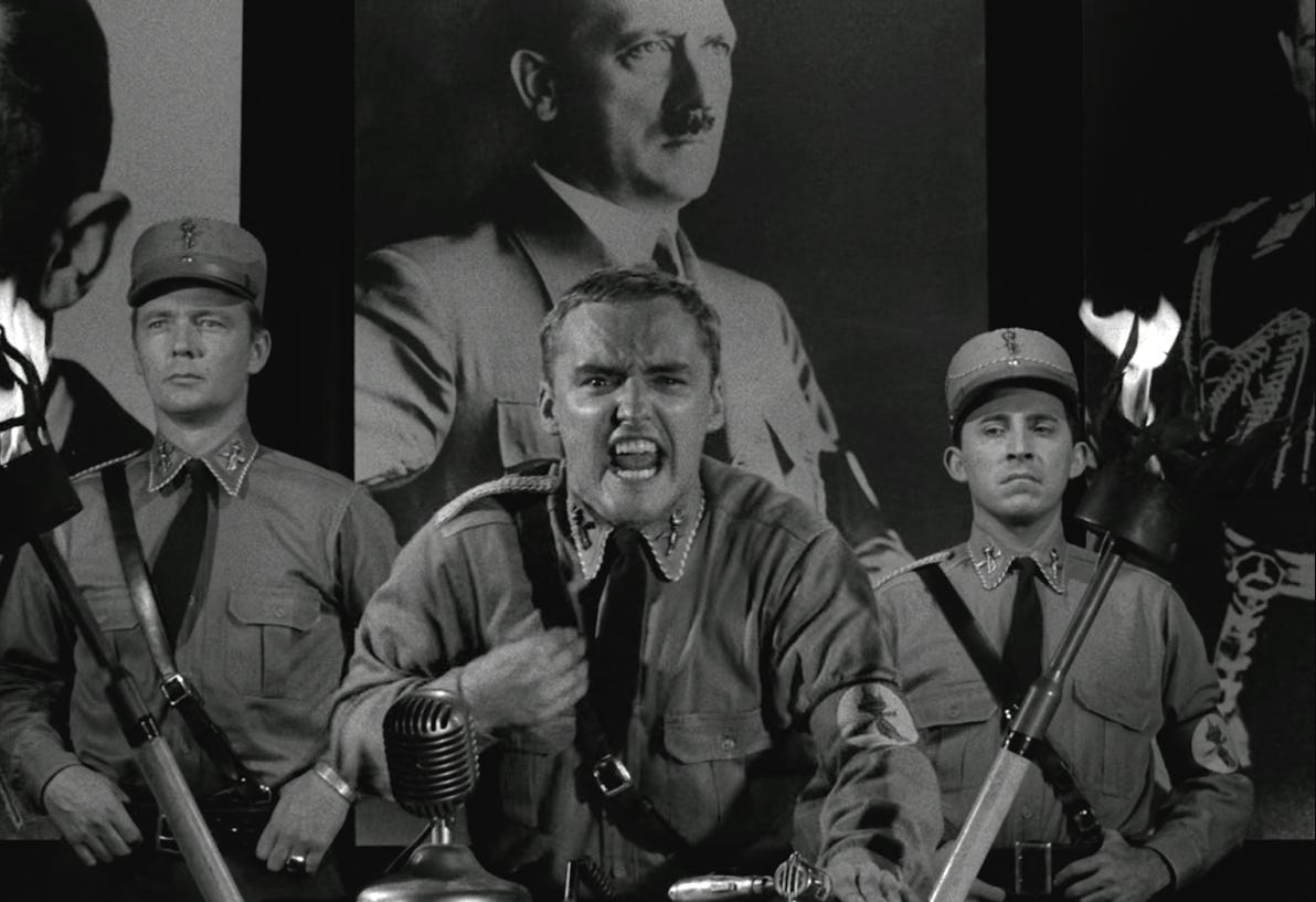 Vollmer’s unabashed fanboyism for the Nazi regime’s figureheads and imagery might stretch our modern credibility, but Serling’s script recognises that fascist ideas often appear unserious, or brash, and easily dismissed. When Ganz and a friend draw parallels between Vollmer’s speeches and their experience of watching the Nazi party rise in 1930s Germany, the friend argues: “It was another time, Mr Ganz. Another place. Another kind of people.” Ganz explains how the Nazis’ propaganda and posturing seemed at the time; a kind of “...temporary insanity, part of the passing scene, too monstrous to be real.” This carries echoes of our own time, as many liberals and leftists who offer parallels with 1930s fascism are denounced for having “Trump derangement syndrome” – something the Trump administration is now attempting to codify as a diagnosable mental illness. Even figures on the left dismiss other leftists’ concerns regarding the fascism of the Trump administration. Ganz continues: “…we ignored them or laughed at them. Because we couldn’t believe that there were enough insane people to walk alongside of them. And then one morning, the country woke up from an uneasy sleep, and there was no more laughter… The wild animals had changed places with us in the cage.”