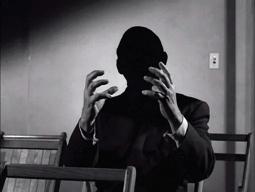 Vollmer asks the figure how he found him. “I simply followed your ideas, Mr Vollmer,” he replies. Serling’s script hints that this is a different kind of ghost story. Far from being a mere ghost of the Nazi Führer, this shadow-faced figure is his geist of Nazism – an expression not just of Hitler the man, but of Nazis as a group, and an ideology. Hitler’s geist (or spirit) has found a new avenue for expression in Vollmer’s rhetoric, and like a moth to a flame, is drawn to him across time, death, and existence itself. Serling’s allegory aims to show that the ideology of fascism is not dependent on historical, materialist conditions – rather it is a shadow of human nature, always ready to be brought into being by damaged, angry young men.
